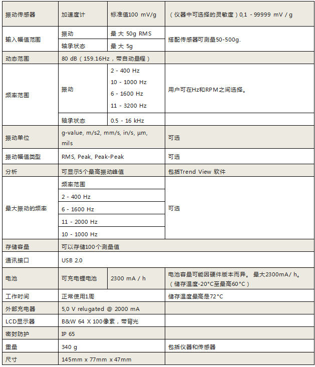 Viber X2 PRO軸承測振儀技術(shù)數(shù)據(jù)